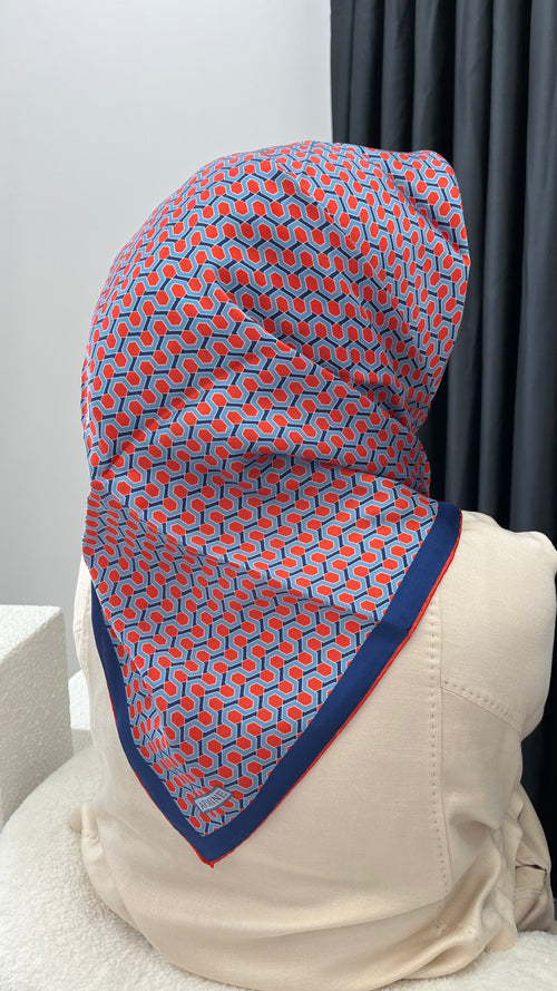 Vual İpek Şal SURA Geometrik Desen Somon Turuncusu -