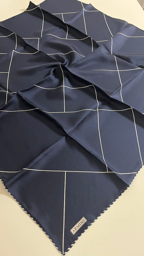 Vual İpek Şal Lacivert Yaprak -